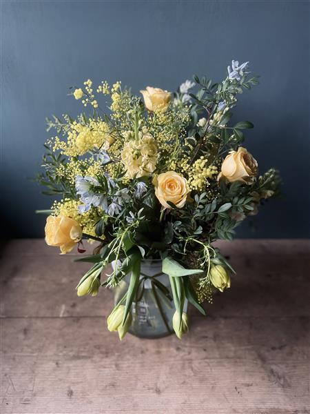 An elegant and zesty mix of buttercup roses, and seasonal lemon tones.