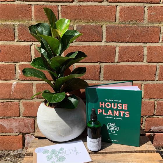 Bundle includes a plant and pot, 'Little Book of House Plants', handmade Lydia Alice card and a bottle of Norfolk Natural Living's organic indoor plant food - everything you'll need for a happy, healthy plant!