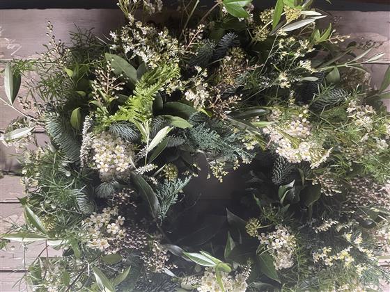 The Nutmeg Wreath - snowy whites and wintery greens.